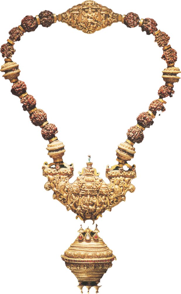 Chettinad jewellery was made in only 22-karat gold, using Burmese rubies and Colombian emeralds. What sets it apart, however, is its distinctive design and purpose. The Nagarathars crafted jewellery not just for themselves but also for deities, creating large pieces for temples. Examples of this work can still be found in Burma, Malaysia, Singapore, and Sri Lanka, dating mostly to the late 17th and early 18th centuries. In fact, the Chettinad mangalsutra can also be found in museums in Singapore and the US. Records of earlier periods are scarce.