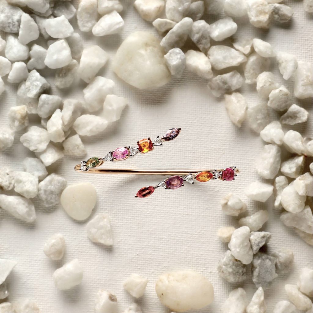 Nature gave me hope during the pandemic, and I wanted to reflect that in this collection. The inspiration has been translated into vine-like motifs, floral wreaths, and coloured gemstones that are full of life. There are pieces in black enamel and colourless diamonds, too, which symbolise endurance.