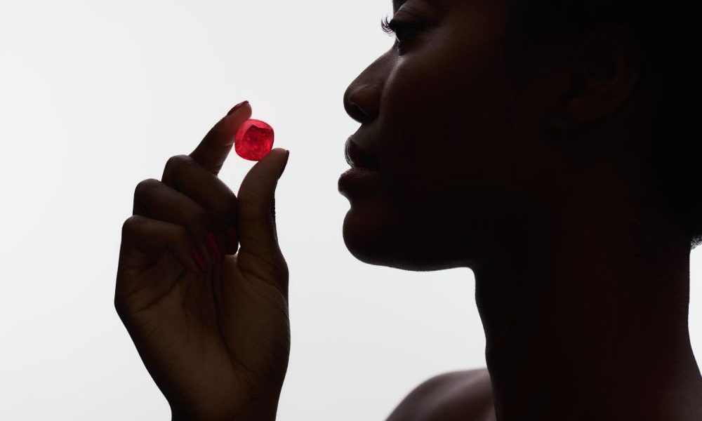 According to Sotheby’s, the gem is profoundly rich in chromium which, when exposed to ultraviolet light – as found in sunlight – causes the stone to radiate a fiery red fluorescence.