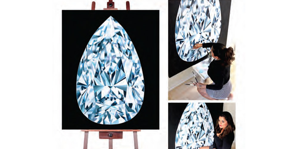 The 5-foot painting, titled The Portrait of Perfection, features a highly nuanced, hyper-realistic diamond with ultra-magnified facets, which took Reena 500 hours to complete. The painting will be auctioned during the cocktail reception at the JFC’s Facets of Hope gala on June 3rd 2018, at the Mandalay Bay Resort Hotel Casino, Las Vegas. “Reena has become such a big support of Jewelers for Children! Her paintings are so popular with our audiences and there is much anticipation about which of her amazing pieces will be available,” said David Rocha, executive director, JFC. “Her support has helped us reach our fundraising goals and meet our mission to help children in need.”