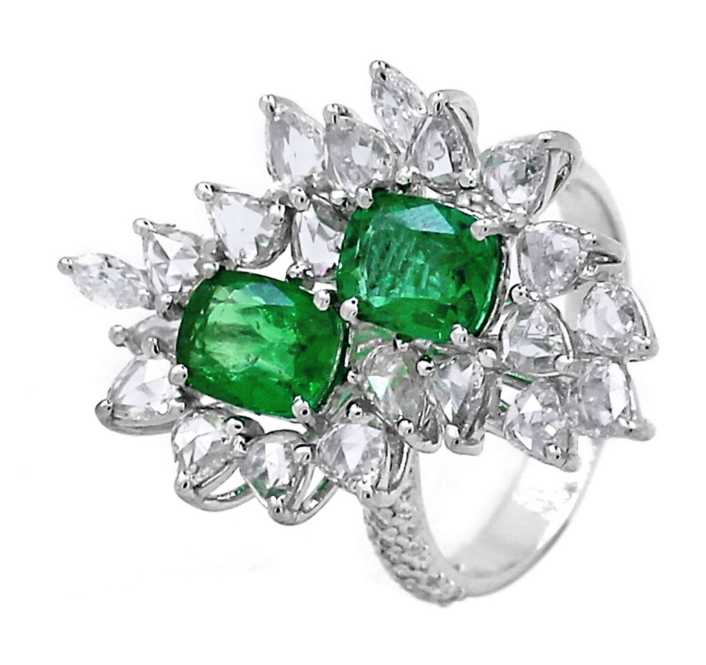 Rose cuts, white diamonds and emeralds grace this statement ring. By YS18 (Intergem Exports)