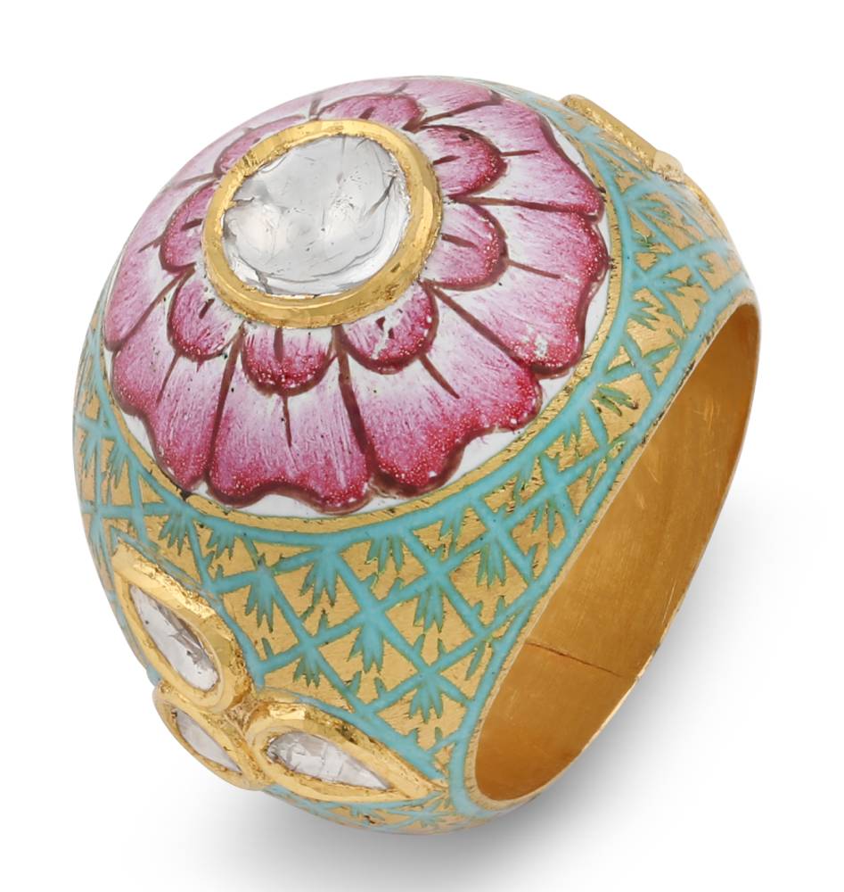 The Enigma Square ring displays a 9.9-carat amethyst encased in an 18-karat yellow gold grid. By OBARIThe Geisha Ring rendered in 18-karat white gold is jazzed up with black mother- of-pearl, diamonds, pink tourmalines, and blue topaz. By Le TrezorThe Vitamin Pink ring crafted in 18-karat rose gold is patterned with mother-of-pearl and bordered with diamonds. By K&CO LONDONThe sleek 14-karat yellow gold band from the Nomad collection spotlights on a kite-cut diamond. By CLAUDIA MAE JEWELRYThe handcrafted Muse ring in 18-karat rose gold is lined with diamonds and features fan-shaped folded finials enhanced with rubies. By KHAYAL FINE JEWELRYThe heart-shaped aquamarine sits pretty in the white gold ring fringed with two rows of diamonds. By La Marquise JewelleryThe 22-karat yellow gold Dome ring is decorated with pink meenakari enamel and polkis. By MANJRIEThe 18-karat white gold Sparkle pinky ring is encrusted with diamonds. By TOi FINE JEWELRYThe 18-karat rose gold My Lady Diamond ring depicts the graceful and charming allure of the bow motif. By NARAYA FINE JEWELRYInspired by Qatar’s National Flower called Qataf, the ring articulates the pink, lilac and magenta flowers in 18-karat gold, diamonds, pink sapphires, rubies, and amethyst. By KALTHAM’S PAVILIONThe 18-karat yellow gold Color Me Happy ring is infused with diamonds and pink sapphires. By SEEMA SOMANIThe hero of the Serendip 18-karat white gold ring is the 6-carat blue-green tourmaline framed partially with diamonds. By NOORA SHAWQIThe heart-shaped cluster of diamonds adorns the 18-karat yellow gold ring.By AILES