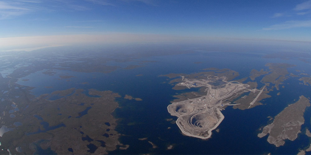 Rio Tinto has operated Diavik since production commenced in 2003. Located approximately 300 km north-east of Yellowknife, the mine employs over 1,100 employees, of which 17 per cent are Northern Indigenous people. In 2020, it produced 6.2 million carats of rough diamonds.