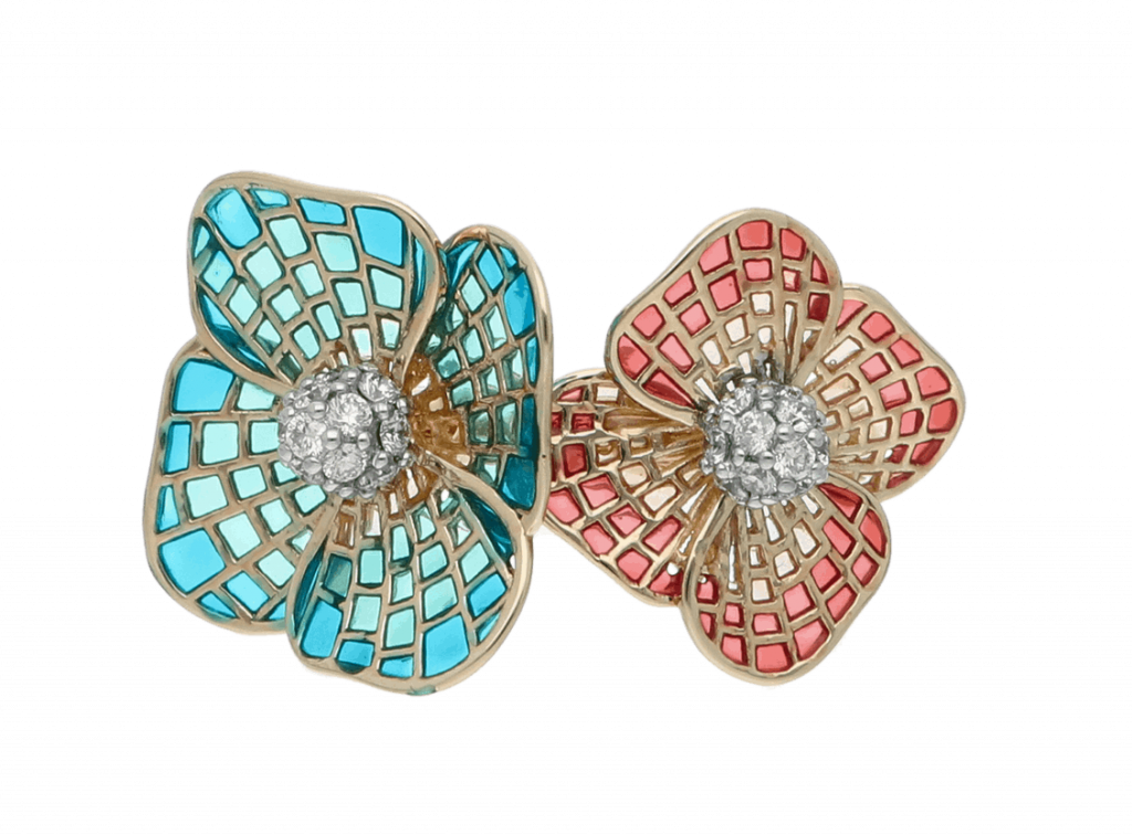 I always use gold and the gemstones I mostly use are rubies, sapphires, and pearls. My favourite is corundum and I infuse my creations with multicolour sapphires. Apart from these, I employ French enamelling, which is my specialization.