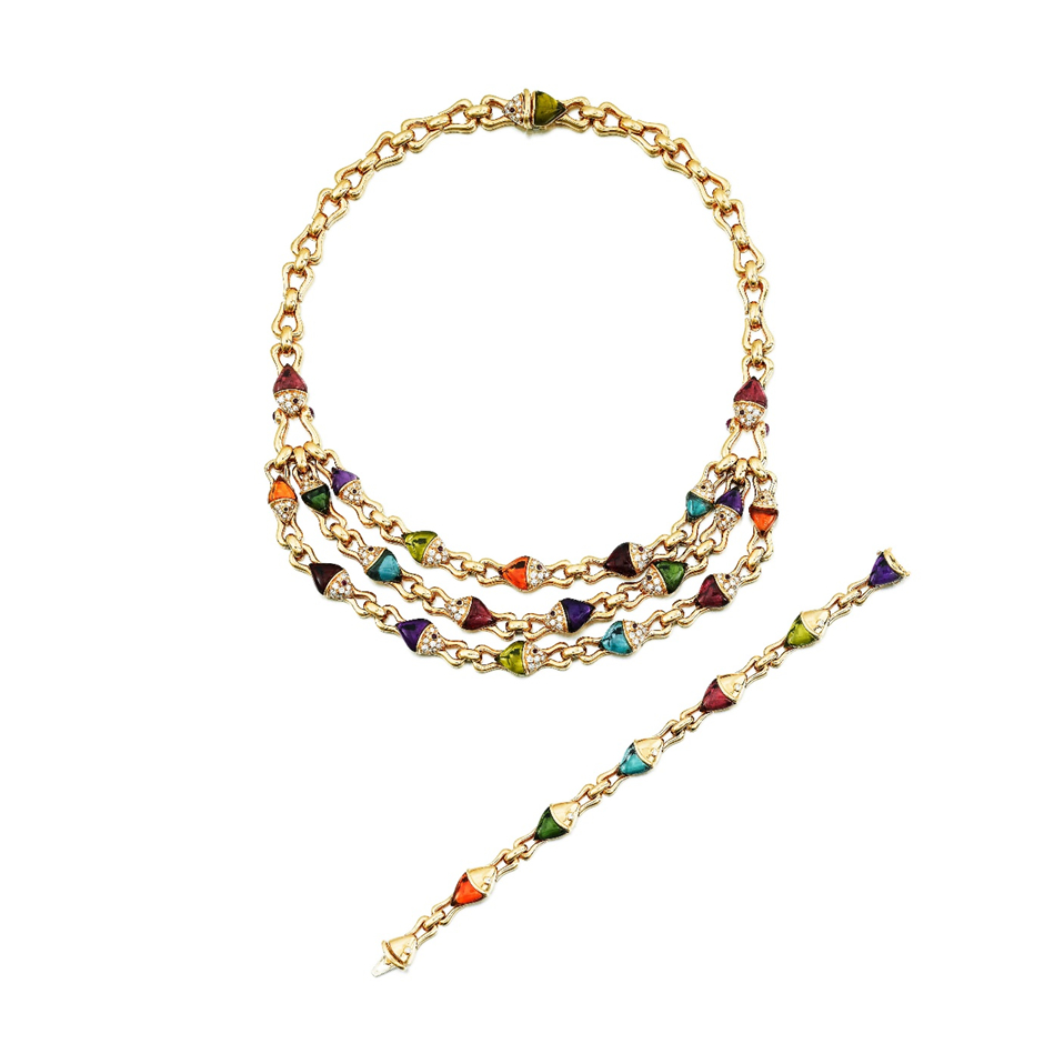 Gem-set and diamond ‘Naturalia Marina’ demi-parure by Bvlgari sold for $192,352.