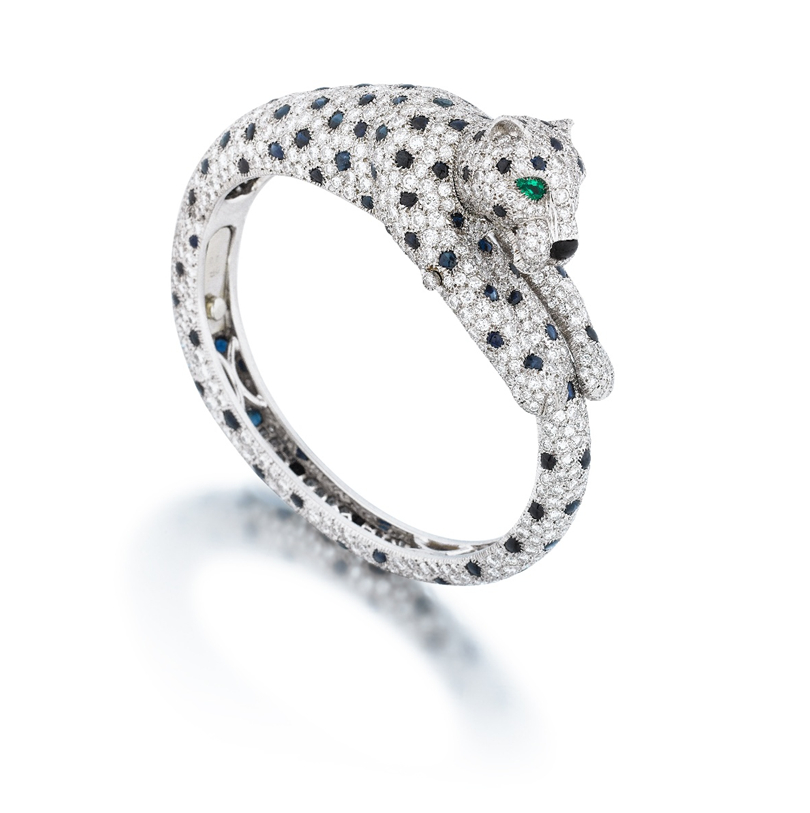 Among the highest value lots, a Burmese sapphire and diamond ring by Cartier, set with a stone of over 18 carats, realised $651,002. A Cartier “Panthère” bracelet (pictured below) set with sapphires, onyx, emeralds, and diamonds achieved $325,591.