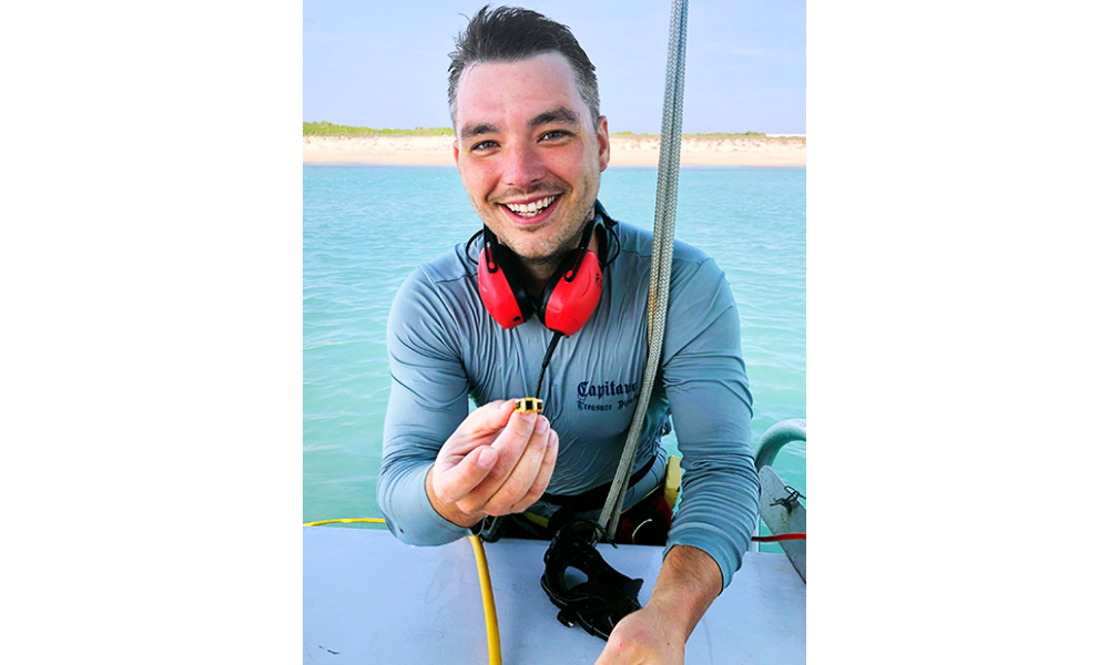 Each summer, when the waters off Florida’s east coast are calm enough for shallow diving, treasure hunters from 1715 Fleet Queens Jewels explore the seafloor for artifacts lost in a Spanish shipwreck from 1715. The company is licensed to operate in an offshore area between the towns of Sebastian Inlet and Fort Pierce, where they mostly recover gold and silver coins and nuggets but have also unearthed jewelry adorned with precious gems (figure 1). GIA’s Carlsbad laboratory recently had the opportunity to study six pieces of jewelry recovered by the team, providing a glimpse into the treasures and skilled craftsmanship of colonial Spain.