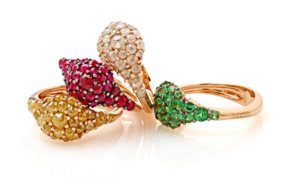 The Fragranze collection from Giovanni Ferraris features fine rose gold beaded with white diamonds. “Layered like notes in a perfume, it’s a collection that builds a beauty greater than any single element.”