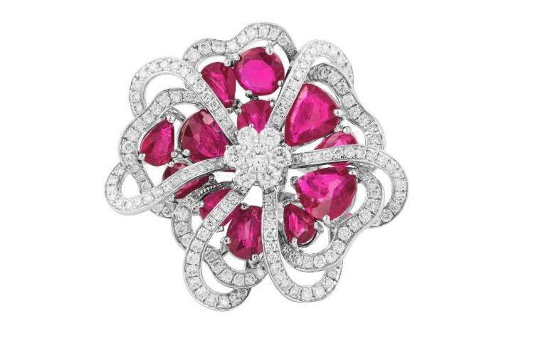The Romance of Rubies ring is adorned with Mozambican rubies totalling 10.25 carats, complemented by white diamonds – a perfect combination that evokes the fervour of Valentine Day’s. By DIACOLOR x Gemfields