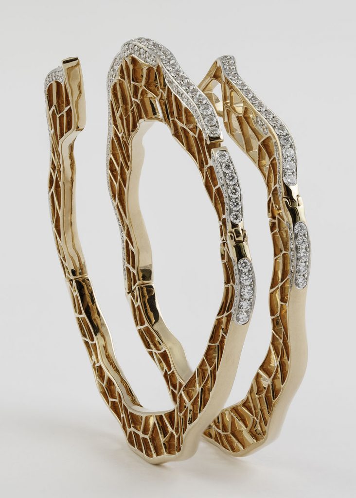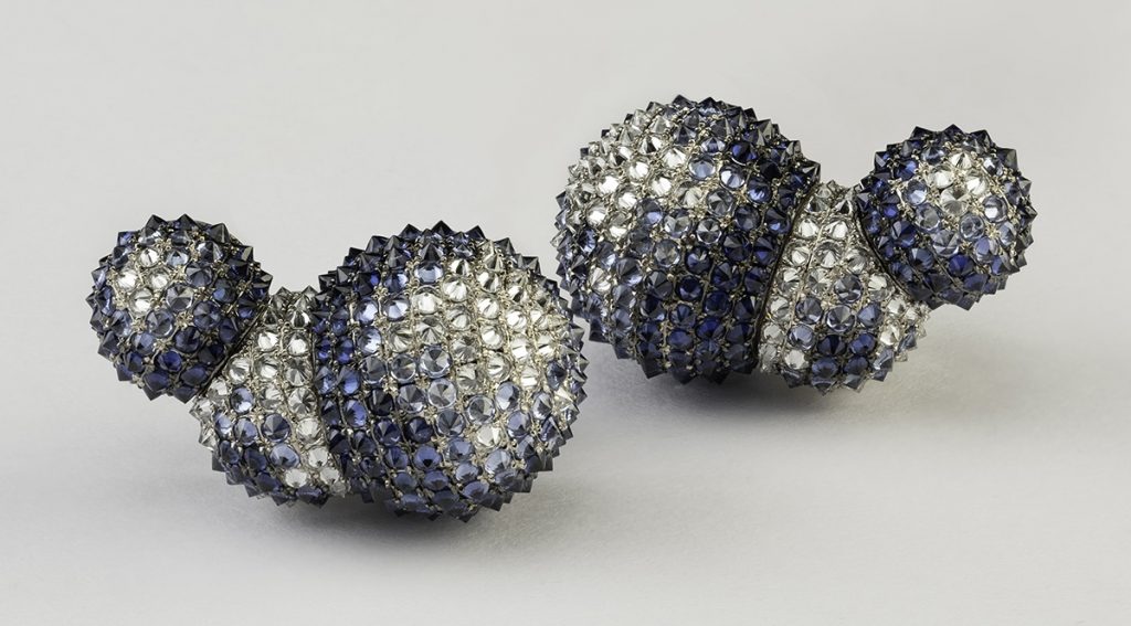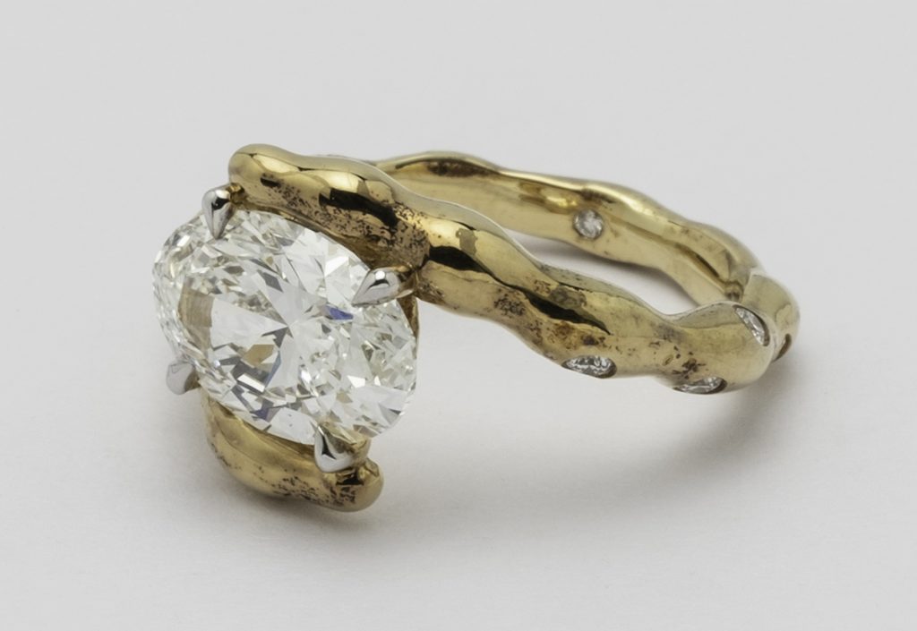 Their collections have a sculptural quality, and the way they use gemstones lends an element of fluidity to the pieces.