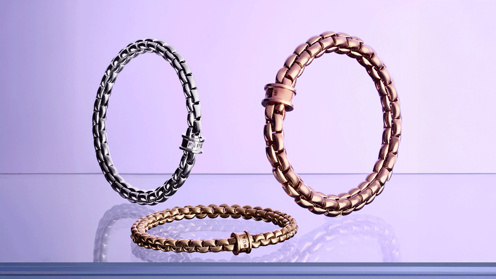 Fope, another jewellery brand from Vicenza, Italy, introduced the Flex’it bracelet in 2007, which achieves elasticity through microscopic 18-karat gold springs. Its design also features Fope’s innovative Novecento mesh, a soft, flexible weave created by hooking the components of the precious metal together without soldering. Flex’it is a patented system for producing jewellery that is entirely and uniquely flexible, comfortable, and easy to wear.