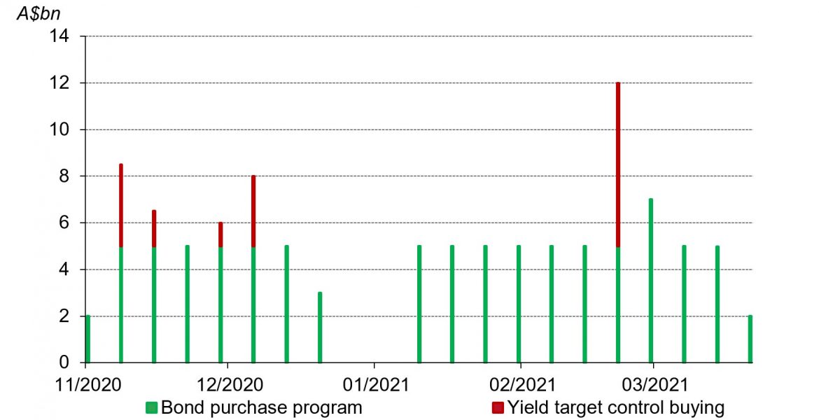 The RBA’s aim of maintaining Australian treasury yields within target is clear. In February, US treasury yields climbed rapidly amid global economic recovery and rising inflation expectations. Similar movements in treasury yields were seen in other markets, including Australia. In response, the RBA increased its bond-purchasing efforts. And it was reported that the Australian central bank also lifted the cost to short government bonds.