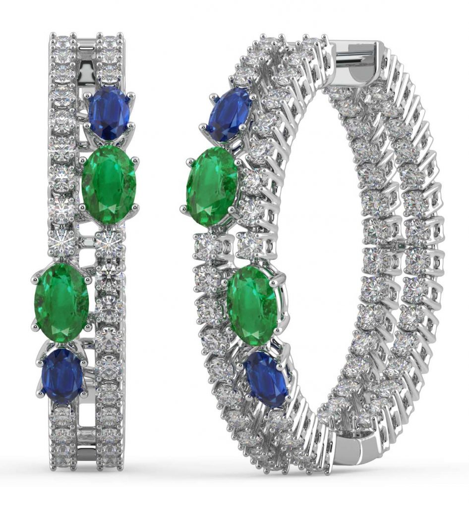 Following the trend of less is more, Valentine Jewellery International will present an array of jewels in white and rose gold employing the best of tanzanites, sapphires, emeralds, and diamonds. The two-row diamond hoops above are dotted with emeralds and tanzanites, and the three-stone and single stone rings can be paired with sleek diamond bands.