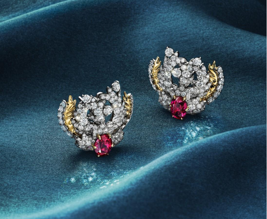 Drawing inspiration from Jean Schlumberger’s whimsical sea anemone brooches, the Anemone chapter abounds in movement and imagination. The centrepiece is a striking necklace, animated with sculptural gold accents and diamonds, and set with three unenhanced rubies totalling nearly 5 carats sourced from the renowned mines of Mozambique, Africa. Prized for their remarkable colour and quality, the rubies appear to dance within the design.
