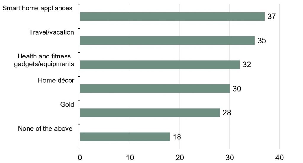 When asked about which items they would like to buy in the next three months, smart home appliances were top of mind, with 37% of urban investors ranking this as their first choice. Looking at gold, 28% mentioned that they would like to spend on gold in the next three months (Chart 2), with Millennials (aged 25-40) more likely than other age groups to spend on gold.