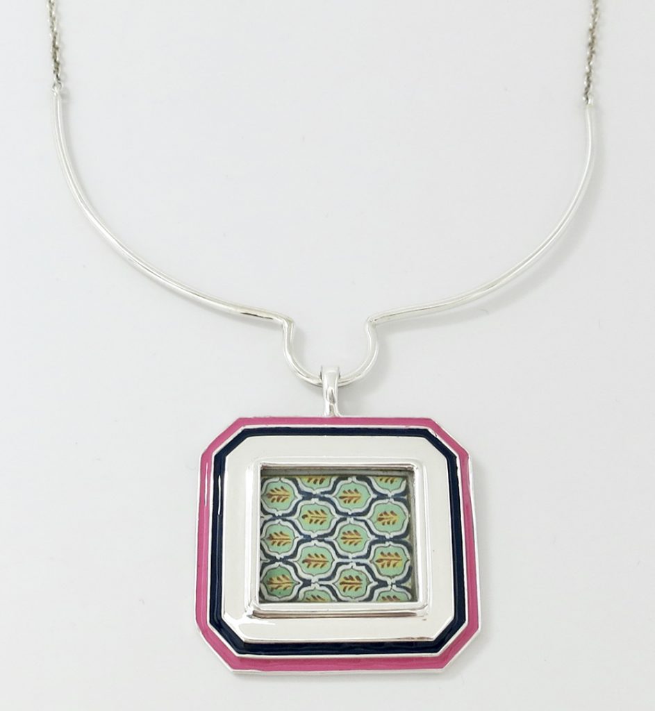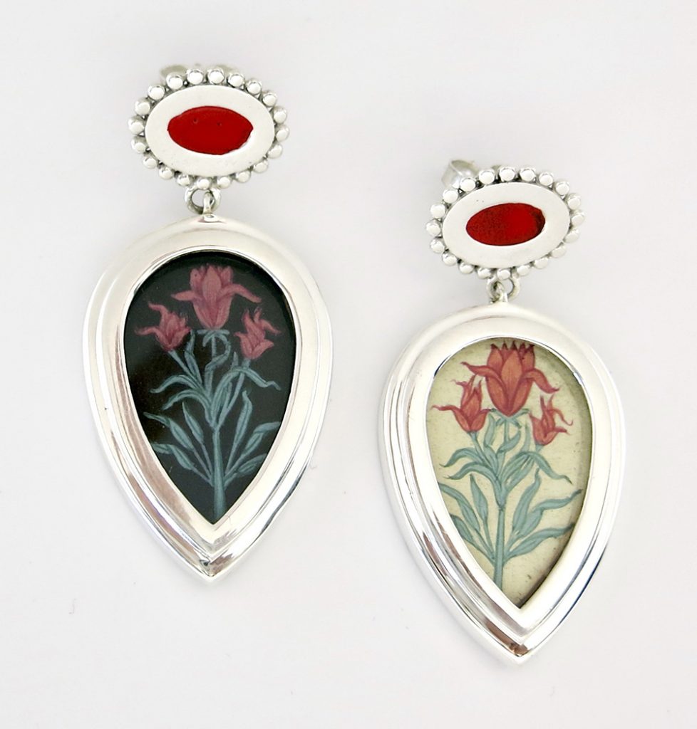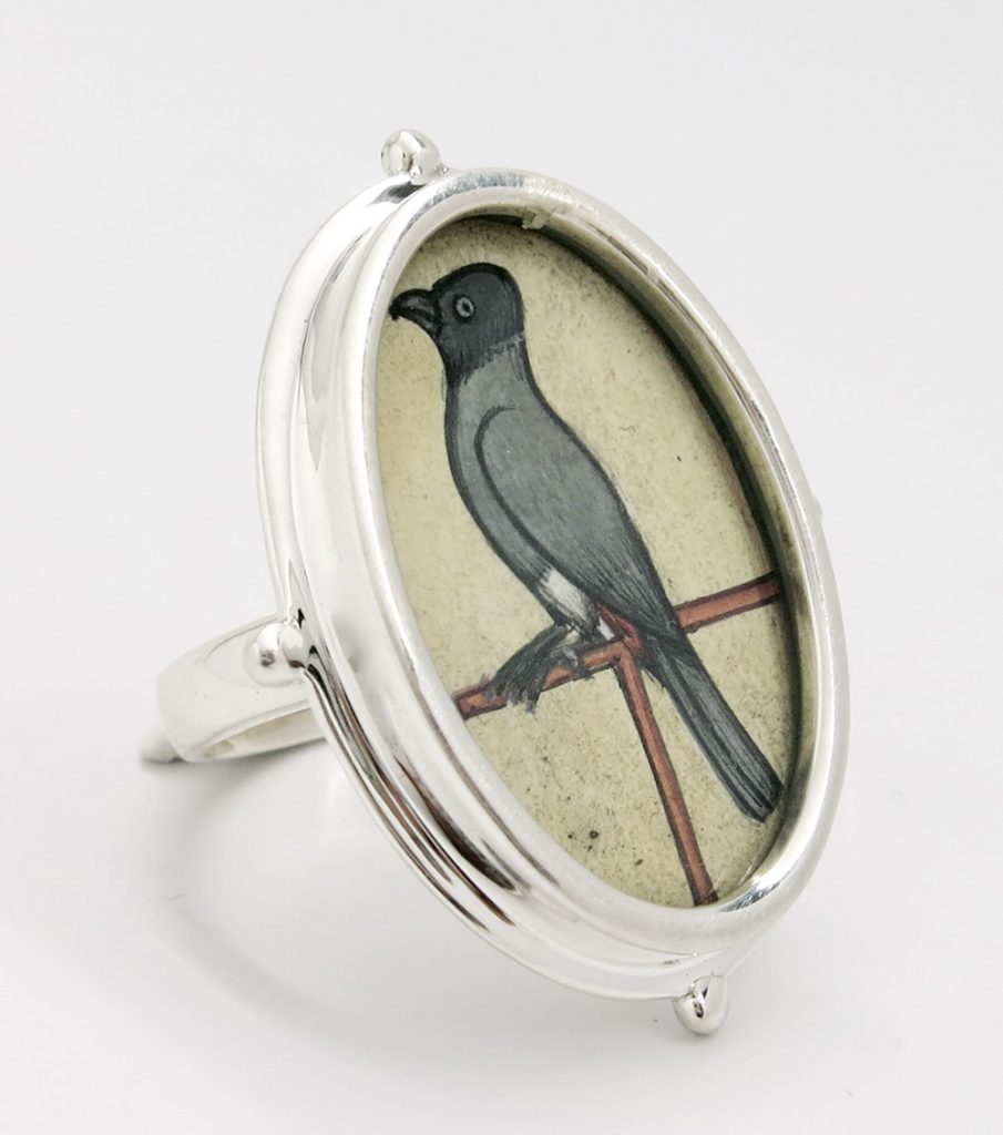 In every single piece of jewellery, enclosed between a silver plate at the back and a glass front, are genuine hand-painted miniature paintings.