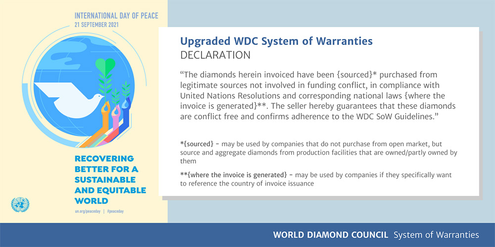 The World Diamond Council (WDC) has marked the 40th anniversary of the United Nations 2021 International Day of Peace with the official public launch of its upgraded System of Warranties (SoW).