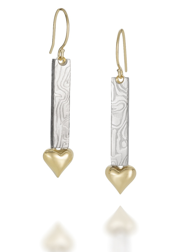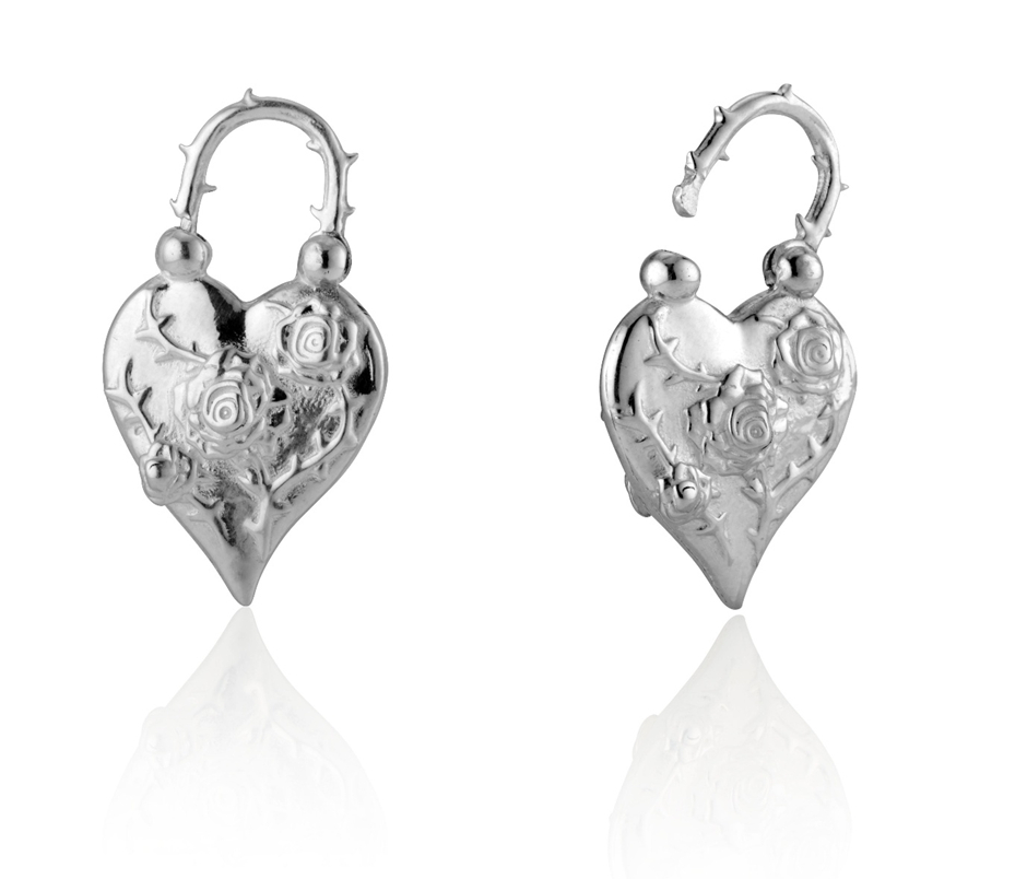 An unheated 2.29 carat heart-shaped Mahenge spinel takes centre stage, suspended by a pear-shaped diamond. Set in platinum, the spinel is framed by 16 round diamonds. By Oscar HeymanThe 18-karat gold Pierced Padlock – Wounded borders on gothic sensibilities. The edgy heart-shaped piece showcases pierced arrows, accented with pavé ruby “wounds”. It’s a design that invites questions – and heightens the melodrama. By KIL N.Y.C.The Rosa Padlock earrings crafted in sterling silver is a modern symbol of strength and sentiment … it is easy to love, and easy to wear and easy to belong. By KIL N.Y.C.The Cassandane diamond signet heart ring crafted in 18-karat yellow gold, features a softly sculpted heart with striated textures and bordered by 0.20 carats of diamonds. The sturdy but silken finish lends a good balance between sentiment and strength. By LionheartThe heart pendant in 18-karat gold, outlined with round diamonds, is highlighted by golden spokes set against a deep green malachite backdrop. By LionheartChris Ploof, in collaboration with Anthony Lent, presents rectangular Damascus earrings suspending 18-karat gold hearts designed by Lent.The Damascus Yanone pendant with pierced heart is inspired by the shape of Japanese arrowheads (yanone). By Chris Ploof
