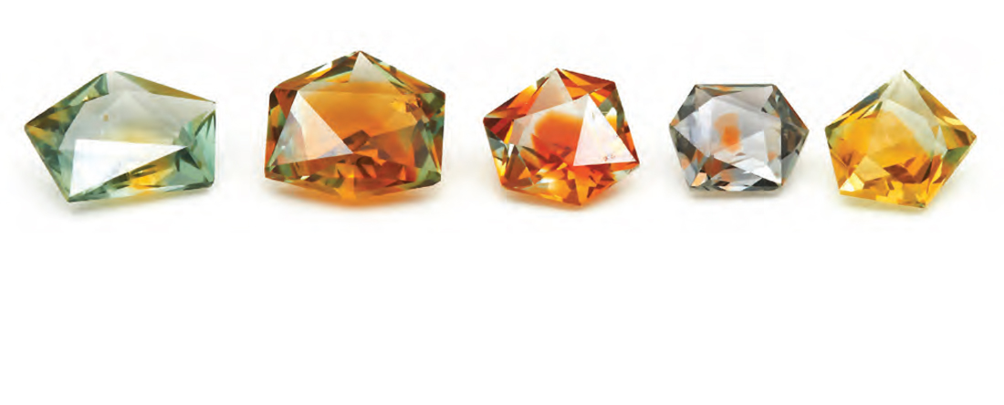 These shimmering gems exhibit a range of colours from gold to blue to green, (they remind me somewhat of a cross between rutilated quartz and labradorite). The gems are found only in one location in a remote region of Kenya, from a mine that is now depleted. “I knew as soon as I saw the rough a few years ago, that I had something special, so I purchased the entire mine’s production,” said Khan. He trademarked the apt name of Gold Sheen™ Sapphire, and showed several laboratory certificates denoting that the gems are natural, unheated sapphire. Look out for more of these golden gems in the near future.