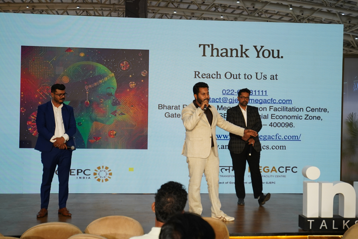 Mr. Nirav Bhansali - Convener, National Exhibitions - GJEPC, Ms. Manushi Chhillar & Mr. Vipul Shah - Chairman, GJEPC